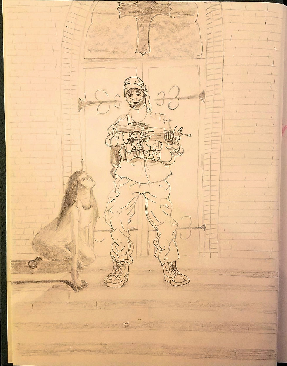 Unknown to me or others in church leadership that Sunday morning the Lord was indeed speaking directly in a vision to this sister who had entered the sanctuary for worship. A vision unfolded before her during the sermon and she immediately went home to illustrate what she saw. As a wonderful artist, the drawing above is her depiction of what the Lord revealed to her so realistically in a way she had never experienced before or since. She had no idea why she received this vision, except she knew it was from the Lord.